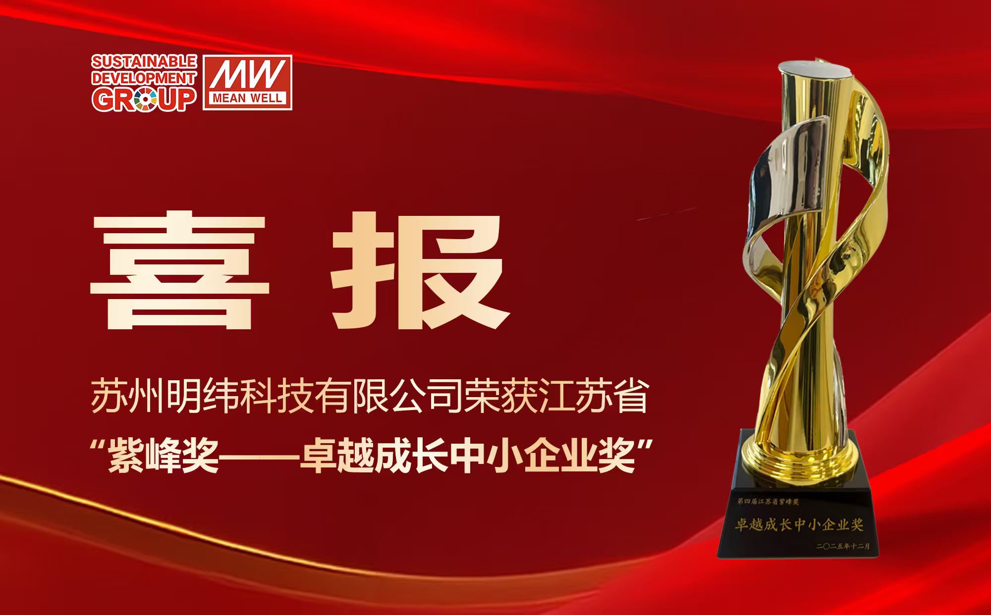 MEAN WELL, a global leader in standard power supply solutions, is proud to announce that on December 16, at the award ceremony of the 4th Jiangsu Purple Peak Awards, Suzhou MEAN WELL Technology Co., Ltd. was recognized with the “Outstanding Growing SME Award” for its remarkable innovation capabilities, showcasing MEAN WELL’s long-term dedication to the market and continuous operational excellence.